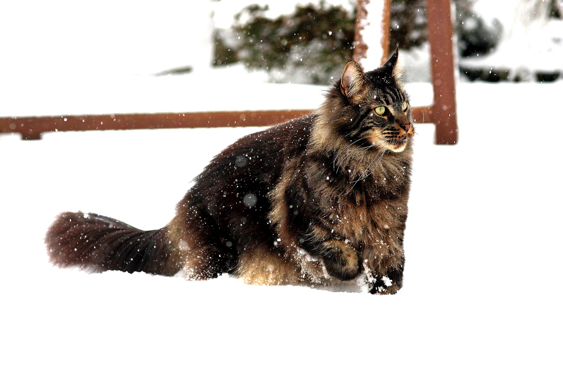 처음 농장에서 쥐를 잡는 용도로 사육되었고 큰 몸집에 야성적으로 보이는 외모이지만 온순하고 상냥한 성향이 있습니다. 해외에서는 자이언트 잰틀맨이라는 별명을 가지고 있을 정도로 매우 똑똑하고 온화한 성격을 가지고 있습니다. 온순하면서도 장난을 좋아합니다. 기본적으로 조용하나 때론 외향적이며 호기심이 왕성하고 겁이 없습니다. 앞발을 다른 고양이들보다 더 자유롭게 사용하는 편이고 영리한 탓에 교육이 가능한 고양이 중 하나이기도 합니다. 덩치가 크고 생김새도 일반고양이보다 턱을 비롯한 입부위가 앞으로 돌출된 편인지라 작은 맹수 같은 느낌을 주기도 합니다. 때문에 울음소리도 우렁차고 골골 소리도 크지 않을까 생각하지만 가녀린 울음소리가 여느 고양이들과 다를 바 없습니다. 물을 좋아하는 편으로 목욕을 시키는 것은 수월한 편입니다. 심지어 물에 넣으면 수영을 하는 메이쿤도 가끔 볼 수 있습니다. 하지만 눈 덮인 야생에 생활하기 적합하게 털이 방수기능이 있어 물을 잘 먹지 않다 보니 목욕시간이 길어지고 샴푸도 서너 배 더 사용하게 됩니다. 무엇보다 고양이를 키우게 되면서 종에 상관없이 각오해야 할 조건이 털 빠짐인데 메인쿤은 털 빠짐이 심한 편이라고 하니 참고하시는 게 좋겠습니다. 또한 털날림도 심한 편이라 주 4~5회 빗질은 필수입니다. 눈이나 얼음에 잘 적응하는 대신 더위에 약한 편이어서 열사병에 주의할 필요가 있습니다. 수명은 9년~13년 정도이고 유전병으로는 비후성 심근증이라는 심장질환이 있으므로 주기적인 검진과 관찰이 필요하겠습니다.