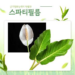 스파티필름은 공기정화 식물 중 꽃이 달리는 가장 대표적인 실내식물입니다. 공기정화 능력이 매우 뛰어난 걸로 알려져 있습니다. 특히 아세톤 제거 능력이 뛰어나며 미세먼지와 더불어 메틸알코올, 에틸알코올, 벤젠, 암모니아, 포름알데히드, 자일렌, 트리클로로에틸렌등 다양한 공기오염물질을 제거합니다. 공기정화능력이 뛰어난 만큼 새집이나 도로변 주택이나 사무실에서 오염된 공기를 정화할 목적으로 키우는데 알맞습니다.